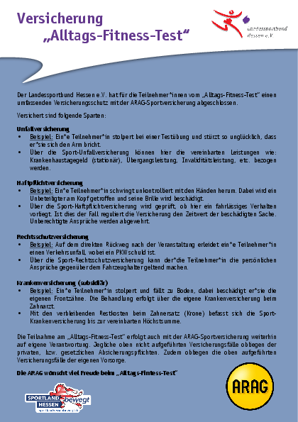 Mit der Broschüre „Fit für Morgen“ bietet der Landessportbund seinen Sportvereinen in Hessen Orientierungshilfen rund um den Gesundheitssport. Dabei geht es um das Gesundheitssportverständnis, über die gesellschaftlichen Rahmenbedingungen, die Qualifizierungsmöglichkeiten für Übungsleiter, bis zu organisatorischen und praktischen Umsetzungsmöglichkeiten im Verein.